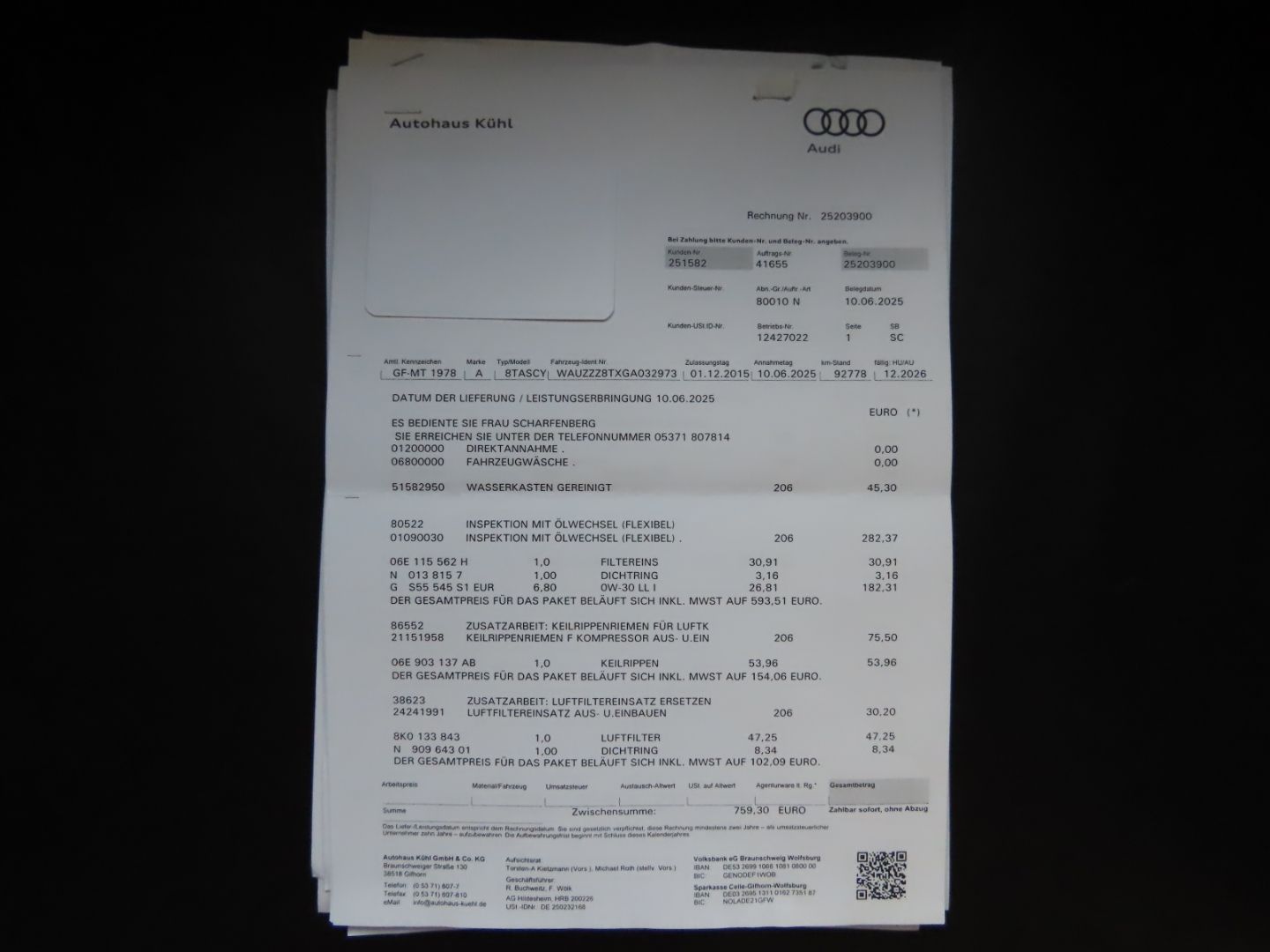 - Vollständiges Audi Scheckheft - Bei autorisiertem Audi Händler gewartet