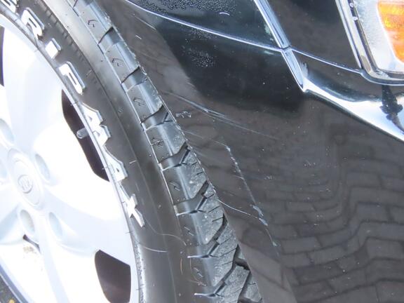 Das Fahrzeug weist unreparierte Schäden wie Dellen, Kratzer oder andere nicht behobene Beschädigungen auf.