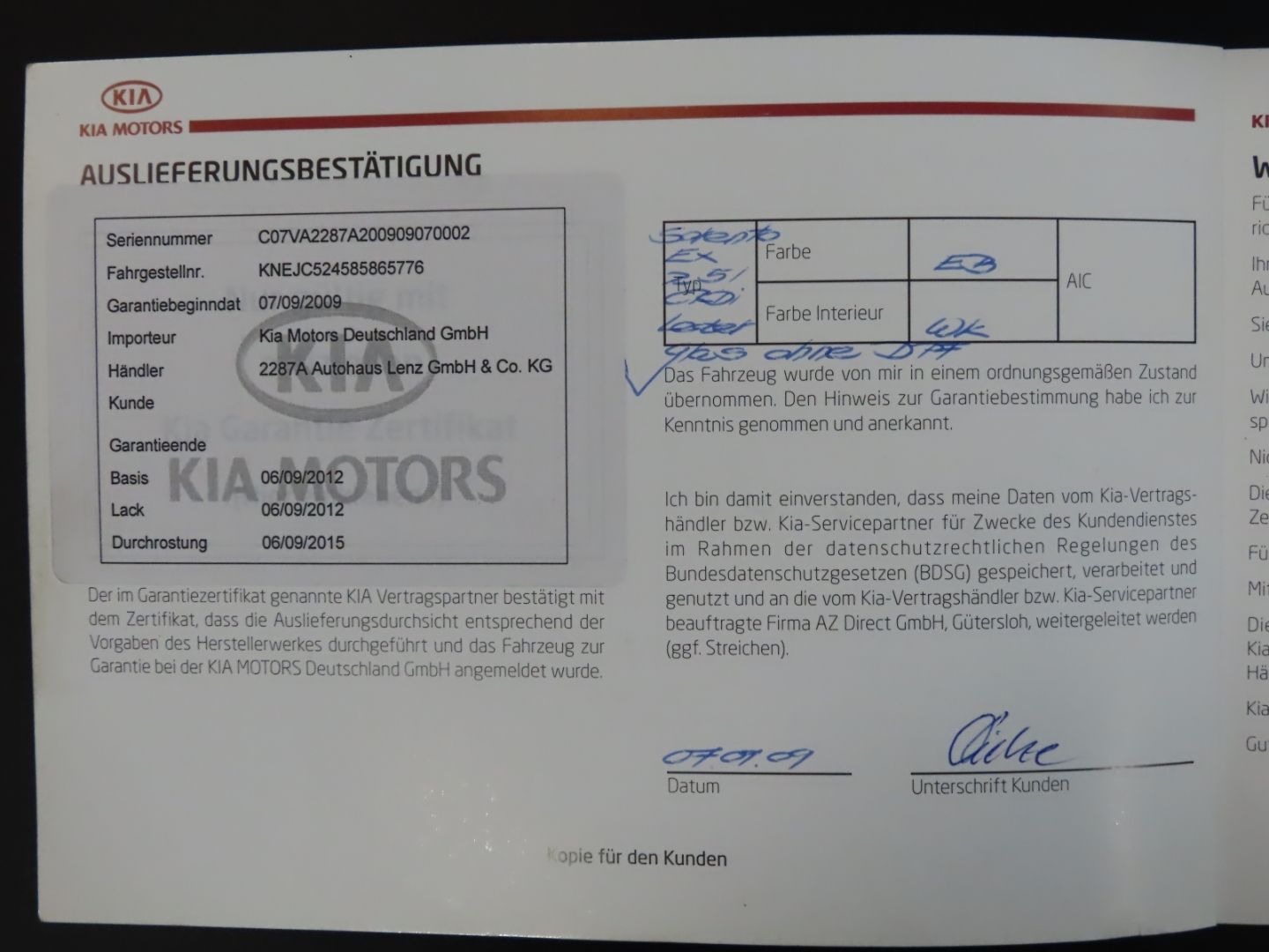 - Vollständiges Scheckheft vorhanden