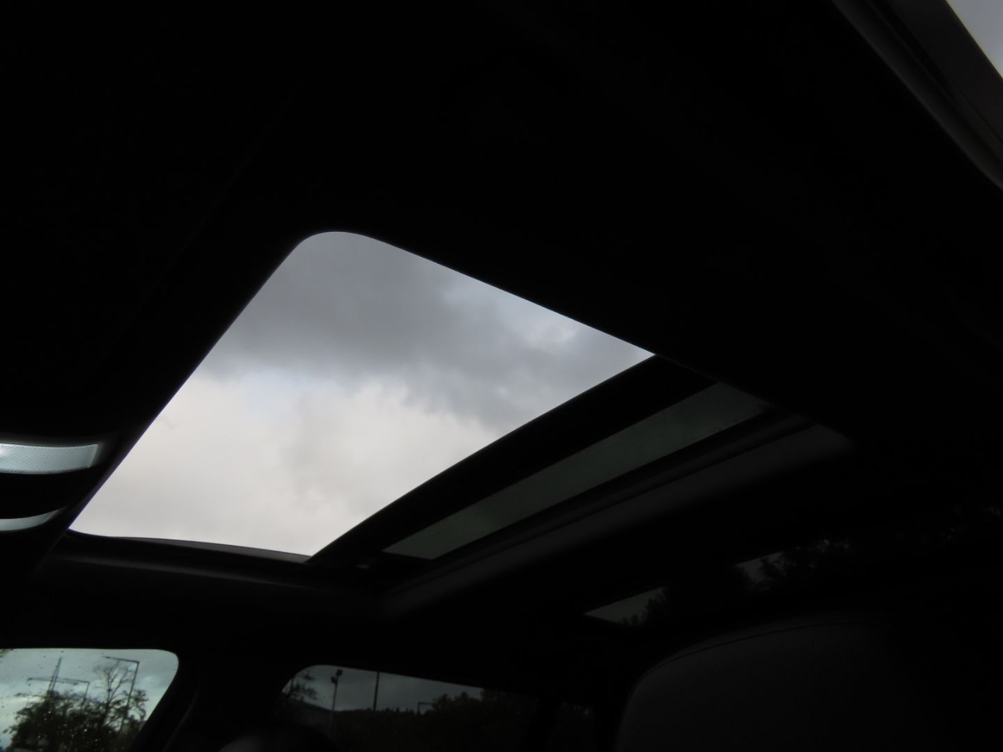 Das Fahrzeug verfügt über ein großes Glasdach, das sich über den größten Teil oder die gesamte Fahrzeugdecke erstreckt und den Insassen ein offenes, luftiges Gefühl sowie spektakuläre Ausblicke auf den Himmel während der Fahrt bietet.