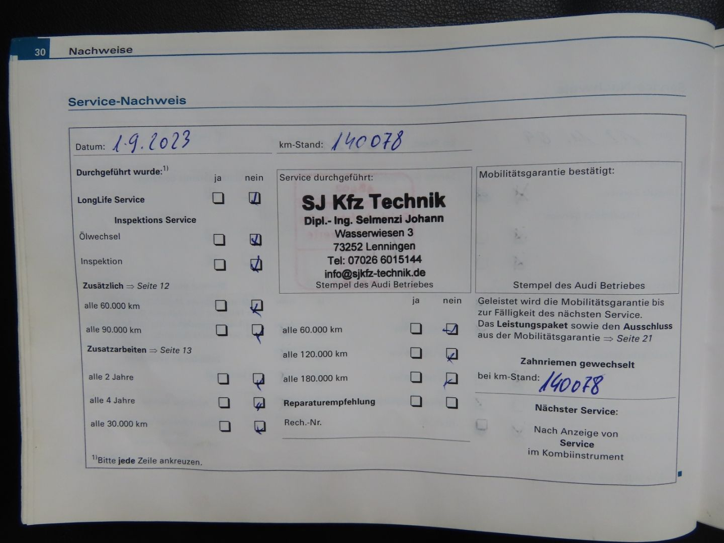 - Last service: 140,078 km / September 1, 2023