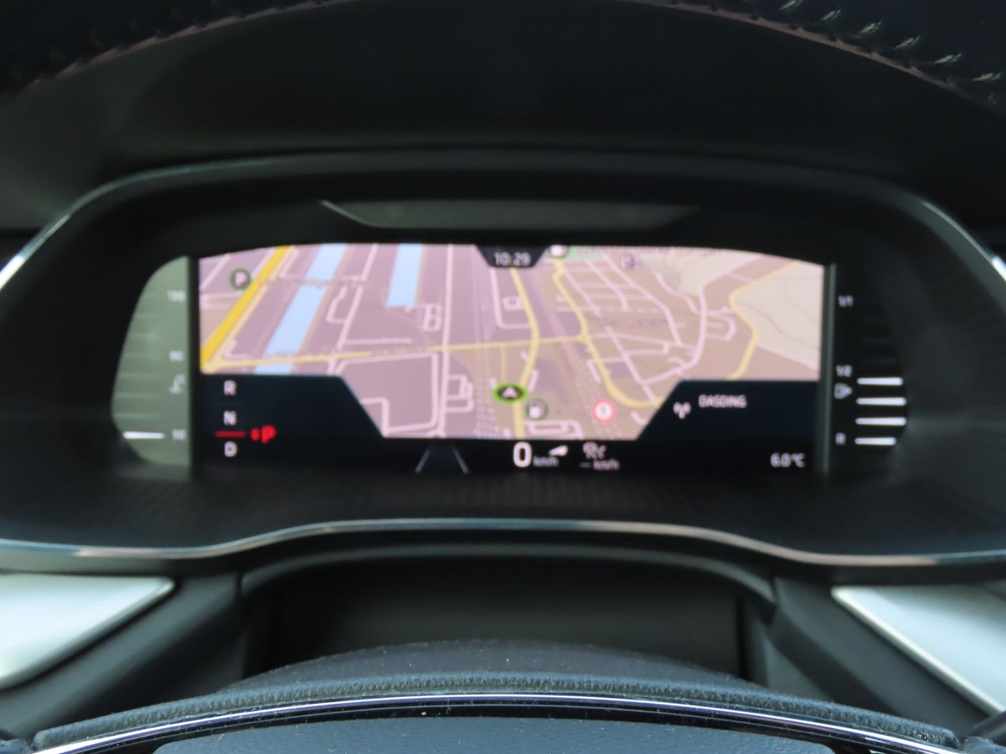 The instrument cluster behind the steering wheel is fully digital, displaying all driving information on a customizable screen rather than traditional analog gauges.