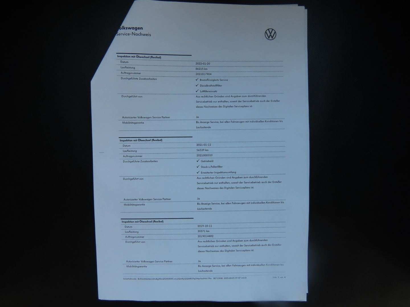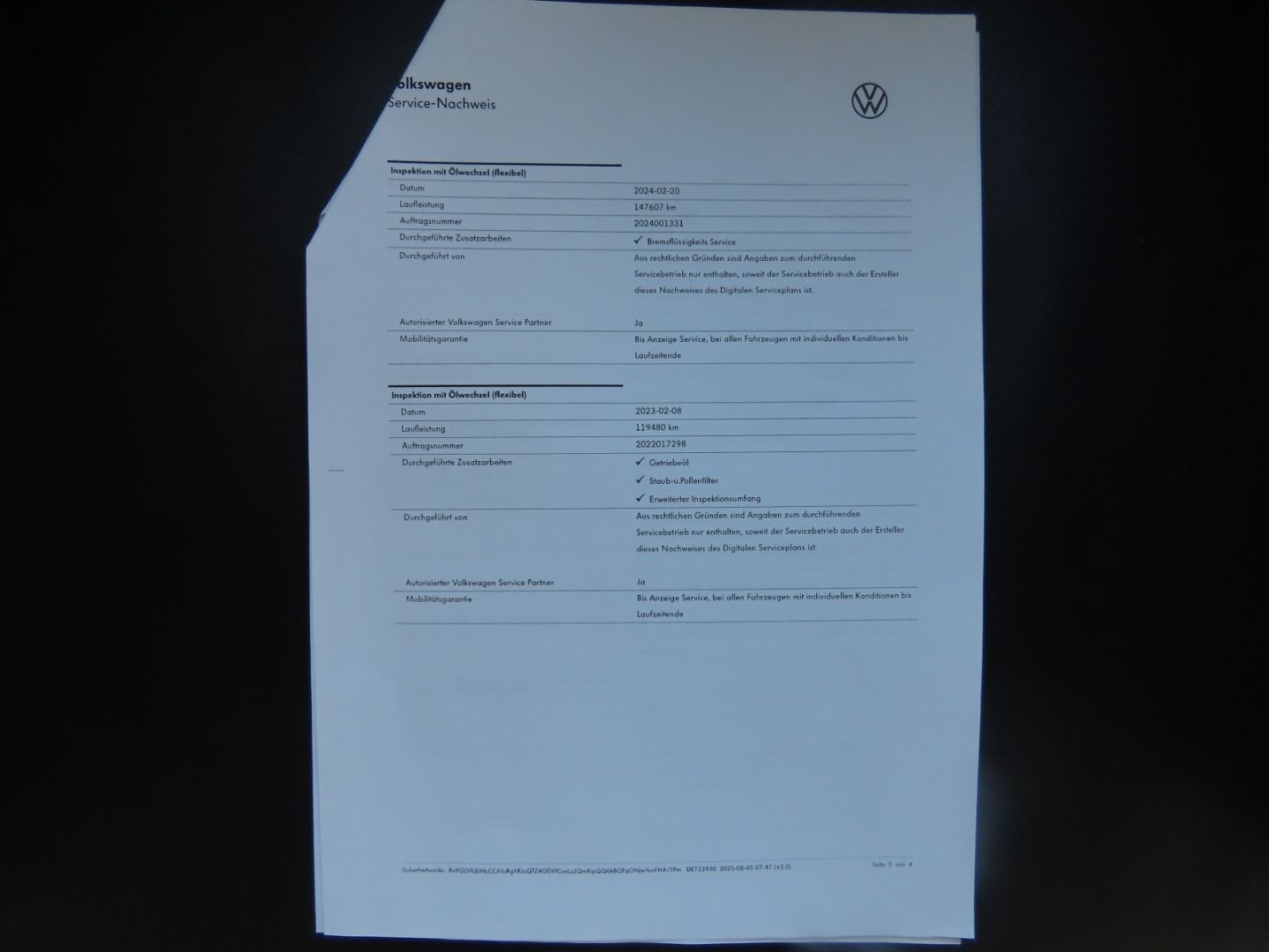 - Complete VW Service History - All maintenance documented